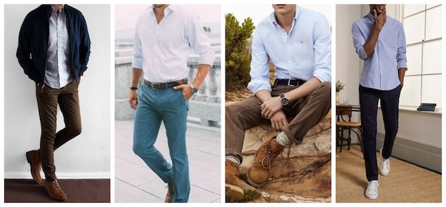 The more casual you’re getting, the more buttons you can unbutton (though you need not go so low as to show chest hair), and don’t forget to roll your sleeves up to add to your laid-back vibe.
