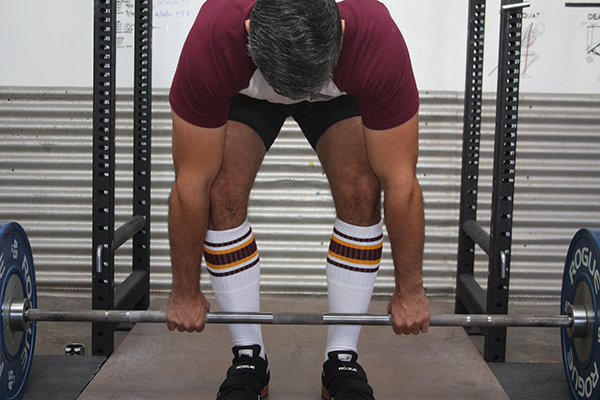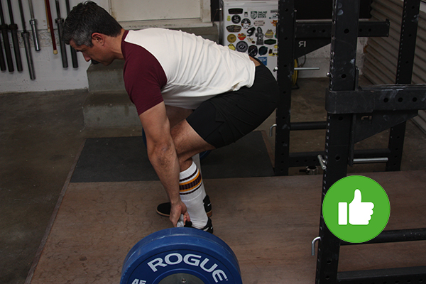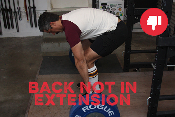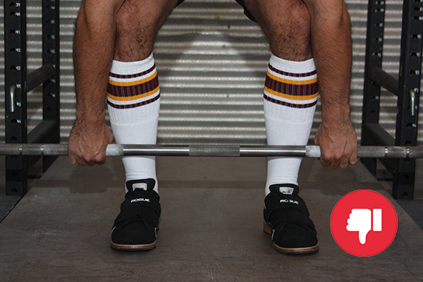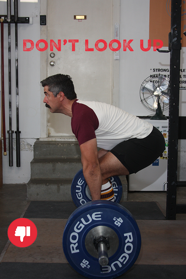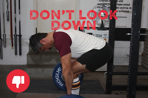 Some lifters also bow their head and look down between their legs when setting up for the deadlift. This will cause your upper back to round.