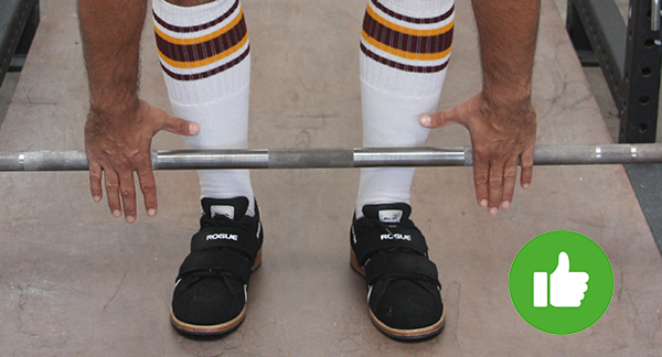 You’ve taken deliberate care to set your feet in the correct position relative to the barbell. The goal for the rest of the setup is to move neither your feet nor the bar.