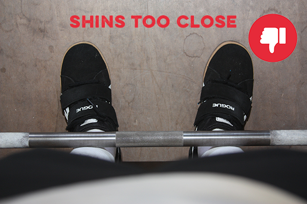 When you grip the bar, your shins should still be one inch away from the bar, like so: