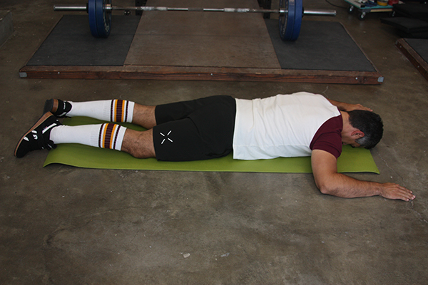 Some lifters will lack the ability to voluntarily engage their back muscles and assume the correct position. Most often they will drop their hips in an attempt to set their back but will end up pulling with a rounded upper and/or lower back anyway. In these cases, it can be helpful to train voluntary control over the spinal erectors. A quick and simple way to do this is to use the “Superman” drill: