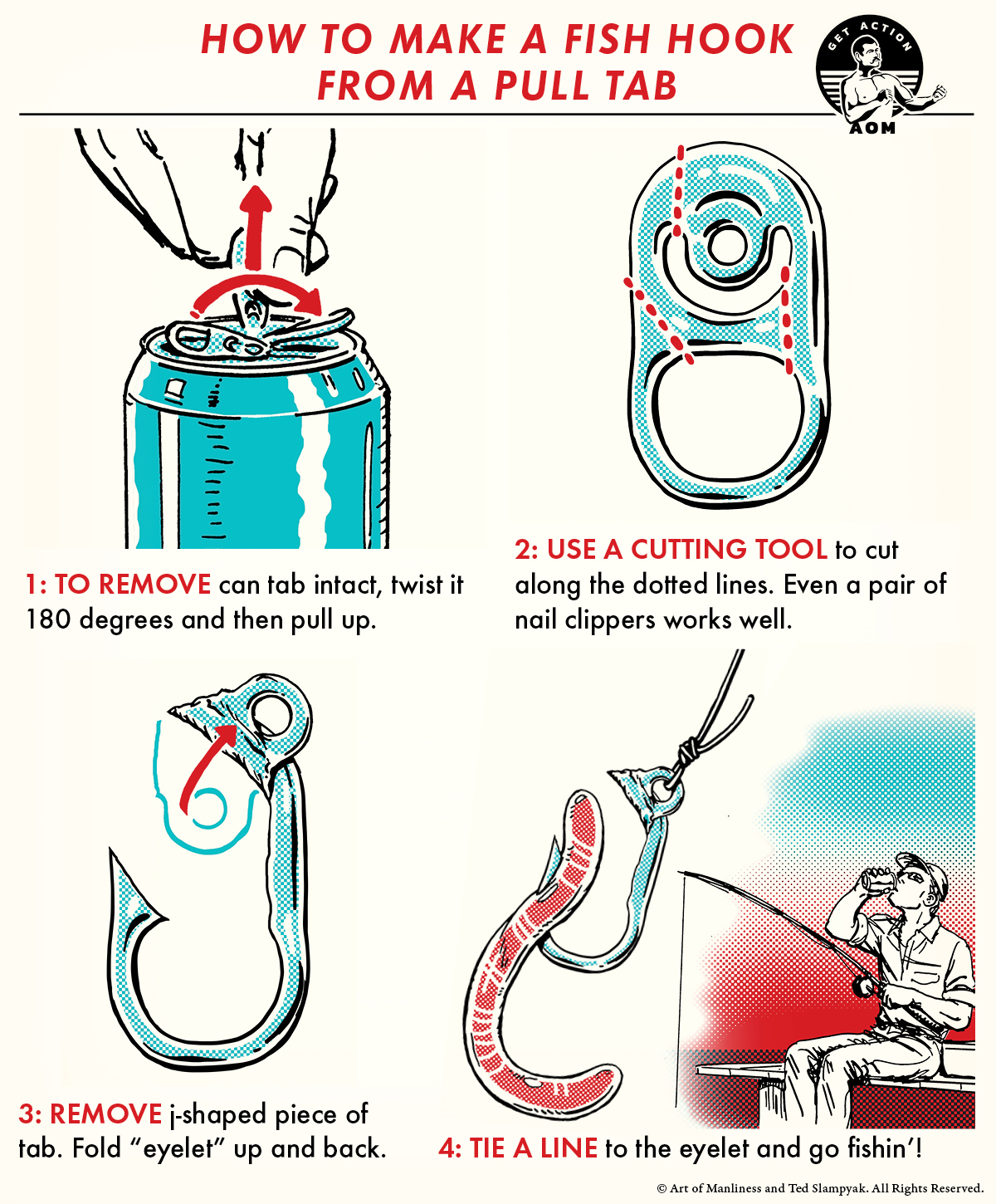 There are many ways to make an improvised fishing hook, from crafting one from organic materials like shards of bone or splinters of wood, to fashioning one from household materials like safety pins and paper clips. But perhaps none is as readily available, effective, and satisfyingly clever as jerry-rigging a hook from the pull tab of an aluminum can. Whether you’ve settled into a fishing spot only to realize you forgot to put hooks in your otherwise well-stocked tackle box, or find yourself in a survival situation where there are no manufactured hooks to be had, knowing this transformational trick can come in handy.