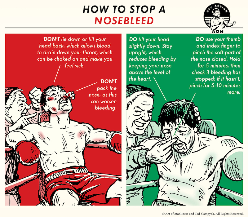 We don’t often see our blood outside of our bodies, so that when a nosebleed occurs, it can feel a little alarming. But unless nosebleeds are extraordinarily heavy, accompanied by other symptoms like high blood pressure and trouble breathing, last longer than a half hour, and/or happen more than twice a week, they’re almost certainly harmless. They’re just messy and annoying, so that you want to stop your own, or your kid’s, as soon as possible, by following the instructions above.